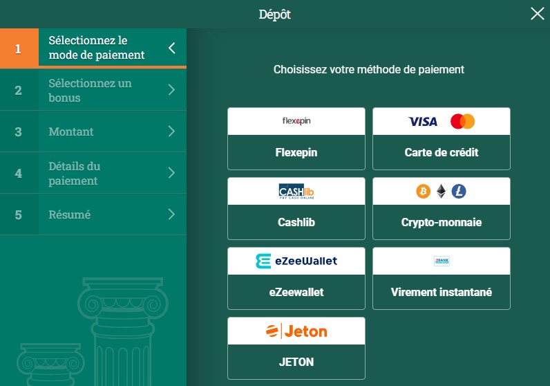 En ce qui nous concerne en France, on devrait pouvoir jouir de plusieurs possibilités (avec un VPN pour utiliser la plateforme) : MasterCard, Visa, JCB, Discover, Virement bancaire, Neteller, Skrill, Klarna, Neosurf, Interac, Mifinity, voire même en Bitcoin. Les dépôts sont immédiats. Il faut juste attendre quelques jours pour les virements.