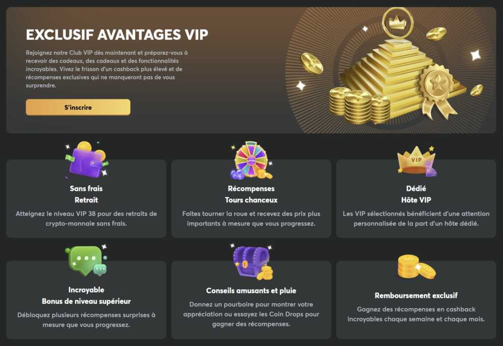 - Primes et cadeaux : Cadeaux d’anniversaire, cashbacks, et autres privilèges réservés aux membres VIP.