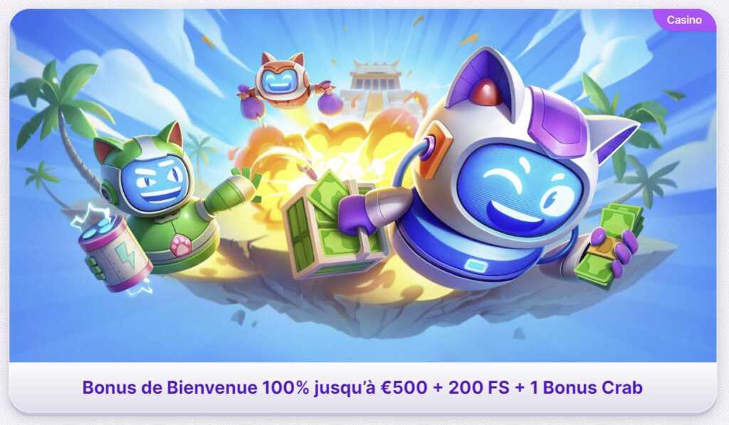 - Stone Vegas : 100% jusqu’à 500€ + 200 Tours gratuits + 1 bonus crab
